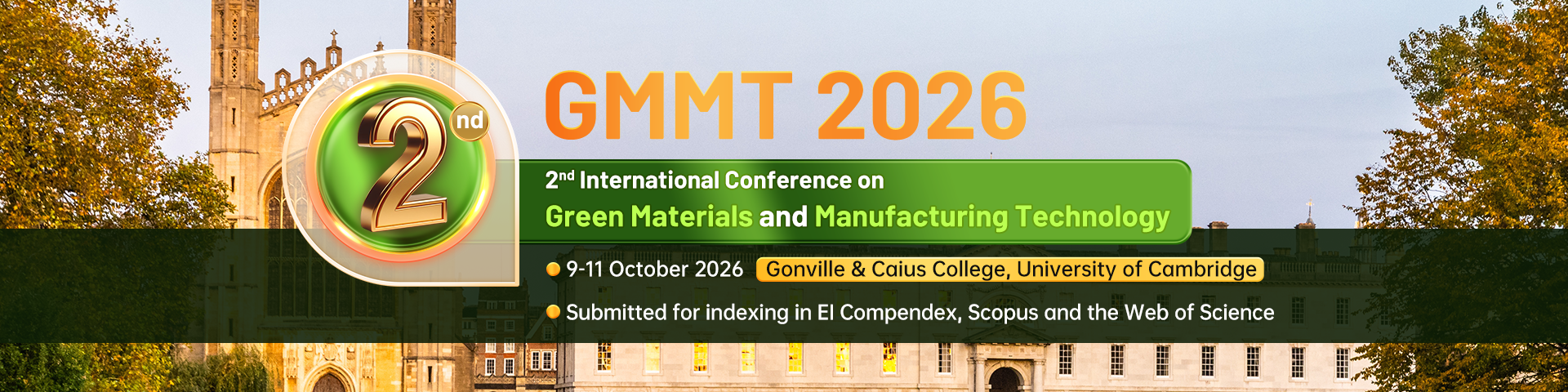 The 2nd International Conference on Green Materials and Manufacturing Technology (GMMT 2026) will take place from 9 to 11 October 2026 at Gonville & Caius College, University of Cambridge. This follows the successful inaugural conference held in June 2025 at Churchill College, University of Cambridge. The conference aims to bring together leading researchers, established scientists, early-career researchers, industry experts and policymakers to discuss the latest developments in sustainable materials and innovative manufacturing techniques.
