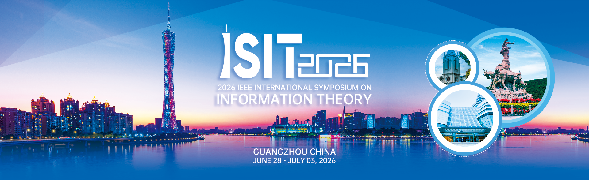 Please join us for the 2026 IEEE International Symposium on Information Theory (ISIT 2026) that will be held in person from June 28 to July 3 in Guangzhou, China.