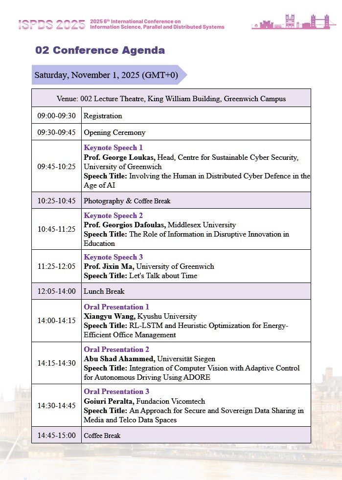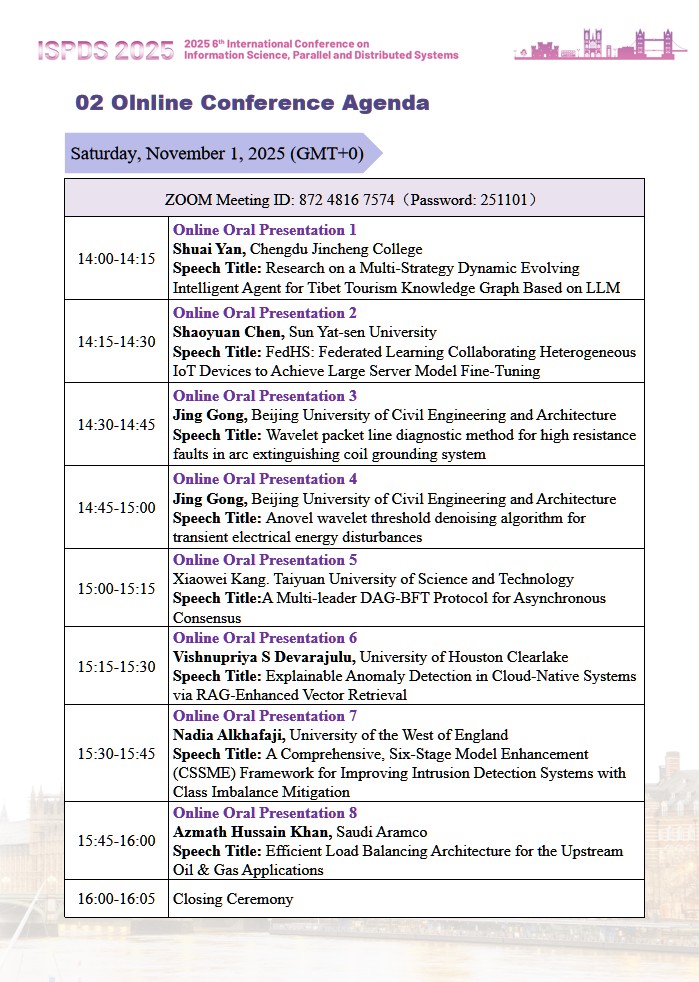 On behalf of the organizing committee, it is our great pleasure to extend a warm welcome to all of you to 2025 6th International Conference on Information Science, Parallel and Distributed Systems, which is held in London, U.K.from October 31 to November 2, 2025.